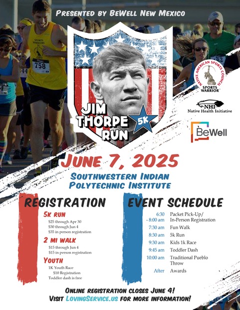 Benefitting NHI’s Sports Warriors program, the Jim Thorpe Run is a fast, flat and favorite run of the Albuquerque running community. Register for this June 7th event in the 5k, 2 mile walk, youth 1k or toddler dash. This is a competitive race with age group prizes both male and female.